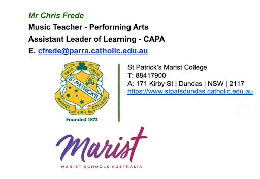 My name is Christopher Frede and I was Aleks’ Music Teacher at St Patrick’s Marist College Dundas.